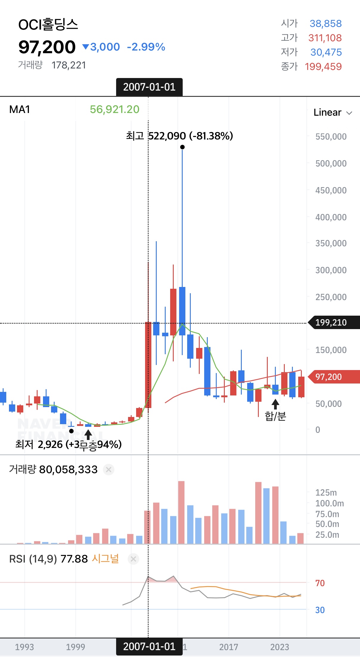OCI홀딩스의 차트 출처 Npay