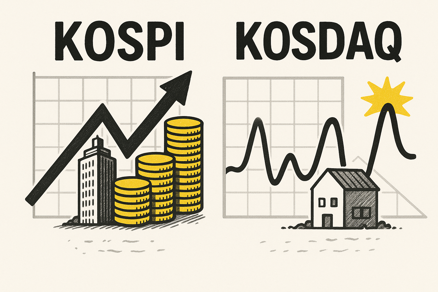 한국에서 주식투자를 시작하려는 분들이라면 가장 먼저 듣게 되는 단어가 바로 코스피(KOSPI) 와 코스닥(KOSDAQ) 일 것입니다. 뉴스를 보더라도 “오늘 코스피가 2,500선을 돌파했다”, “코스닥이 급락했다”라는 표현을 흔히 접할 수 있죠. 그렇다면 이 두 시장은 구체적으로 무엇이고, 어떤 차이가 있을까요?