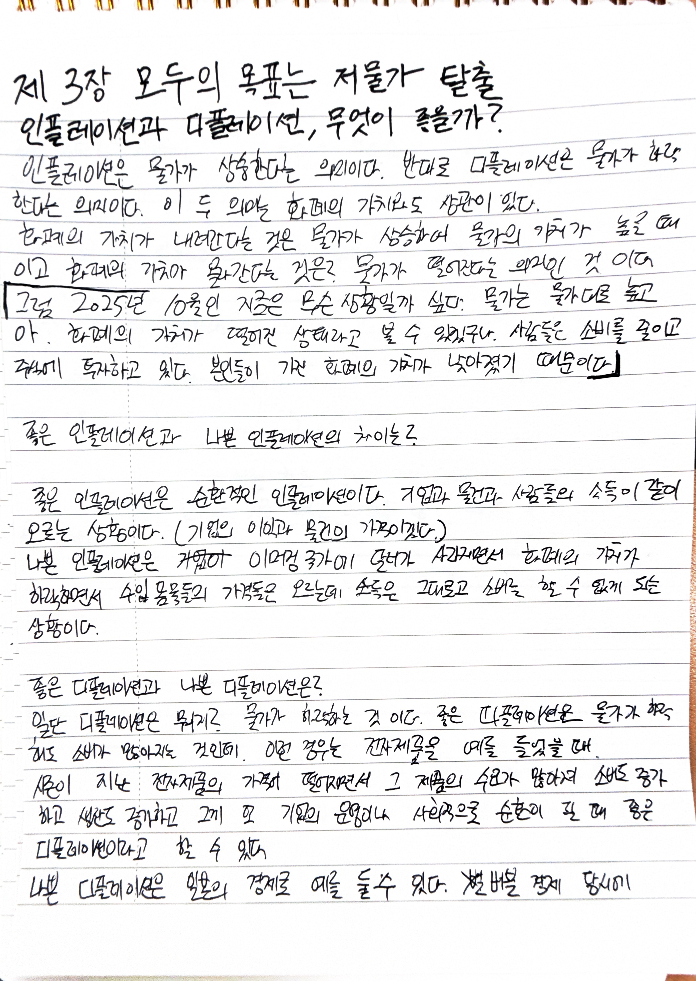 그럼 2025년 10월인 지금은 무슨 상황일까 싶다. 물가는 물가대로 높다. 아. 화폐의 가치가 떨어진 상태라고 볼 수 있겠구나. 사람들은 소비를 줄이고 주식에 투자하고 있다. 본인들이 가진 화폐의 가치가 낮아졌기 때문이다.